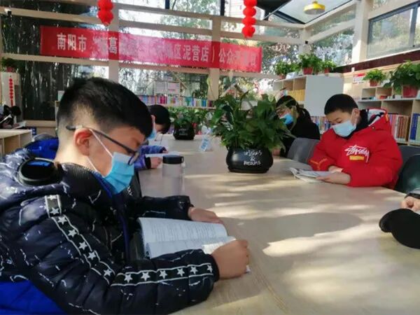 30余名中小学生错落就坐在书架周围,翻看着自己精心挑选的图书。室内崭新的桌椅板凳分布均匀,书架上各类图书琳琅满目,几盆盆景绿意盎然,空调开放,室内温度宜人。这是2月3日上午,宛城区城市书屋之一的“诸葛书屋”泥营店里的温馨的一幕。
